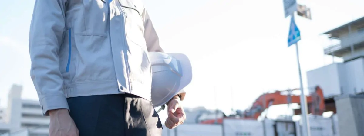 Worker holds his helmet as he prepares to go to work.